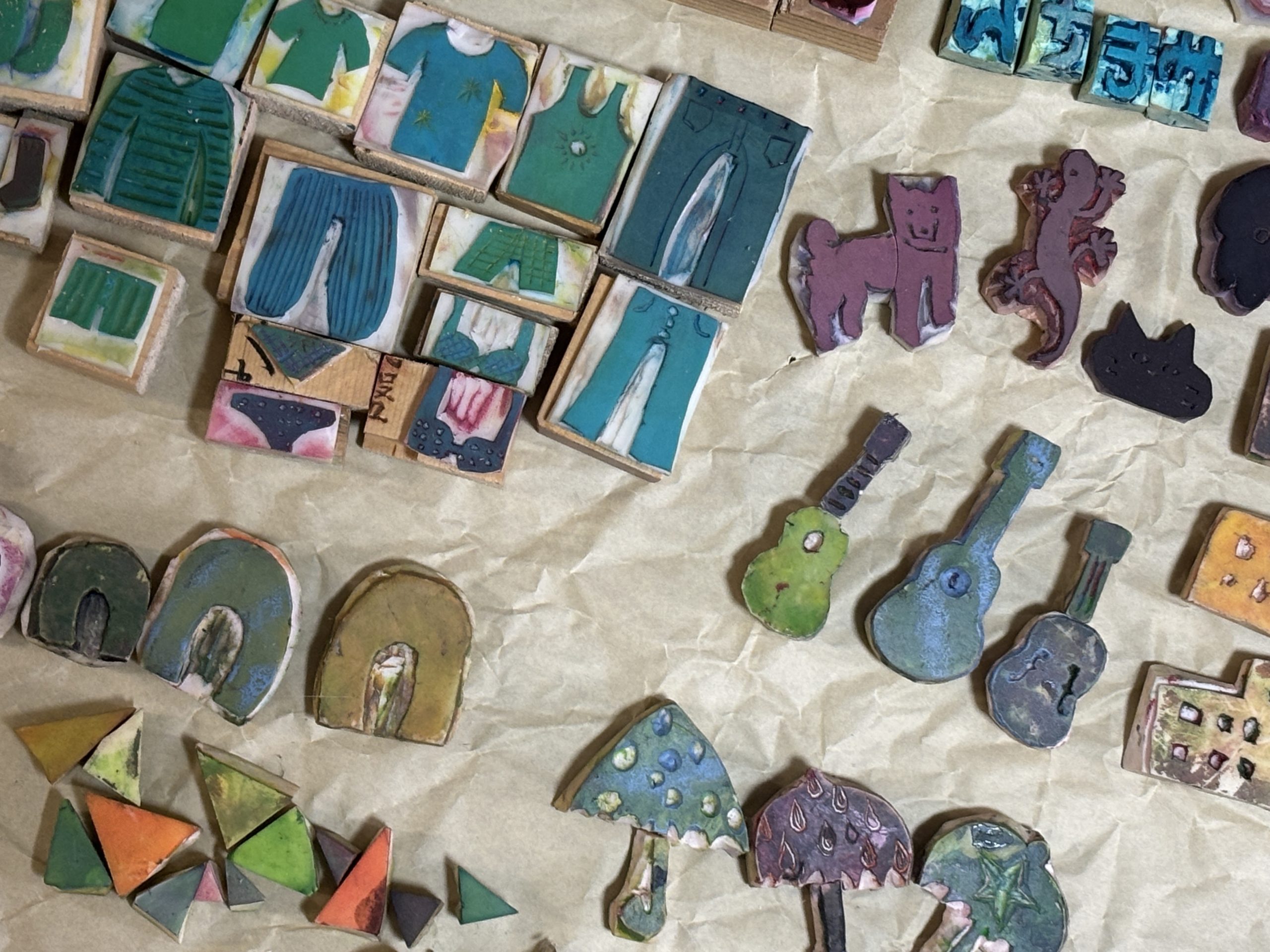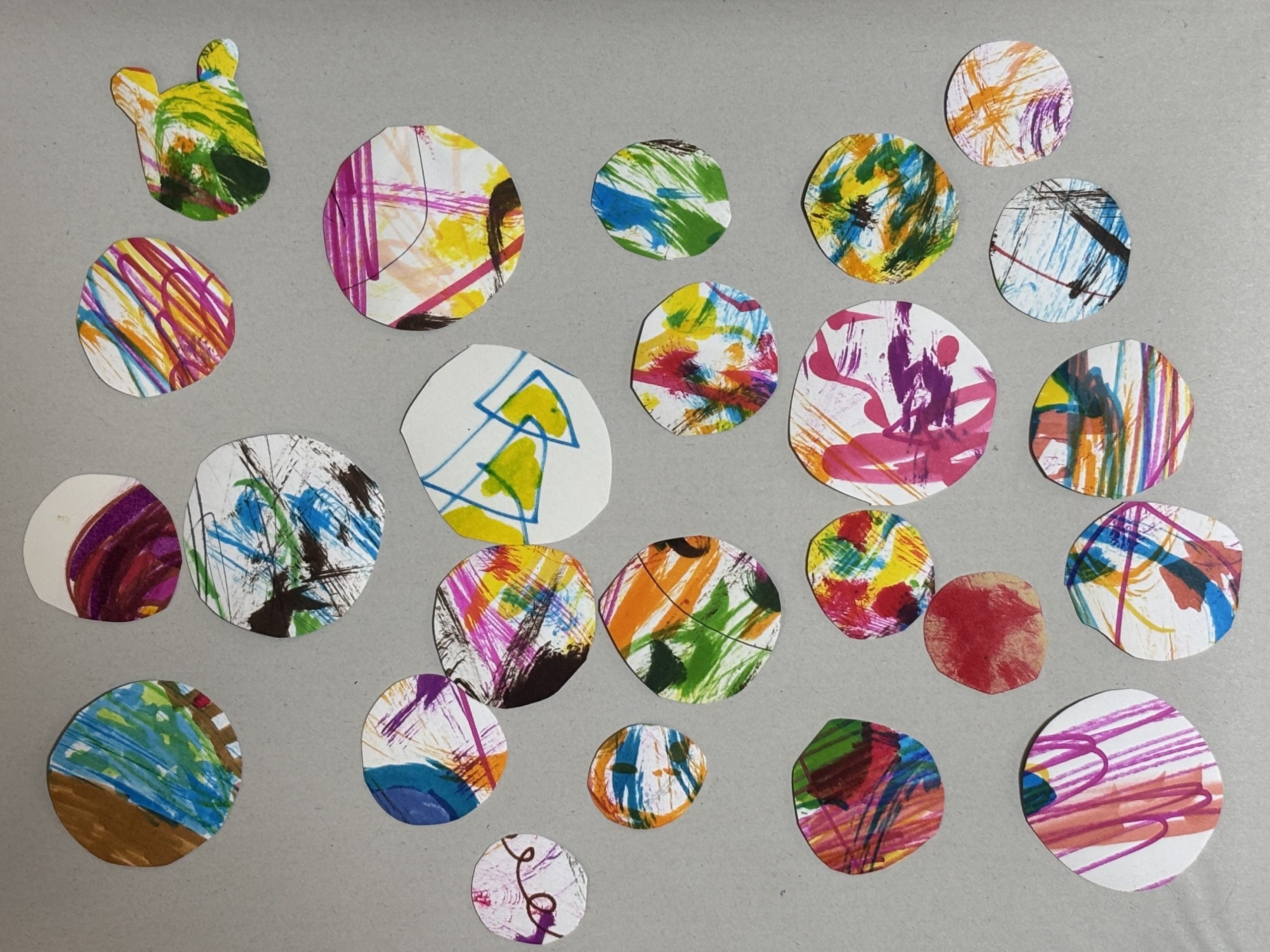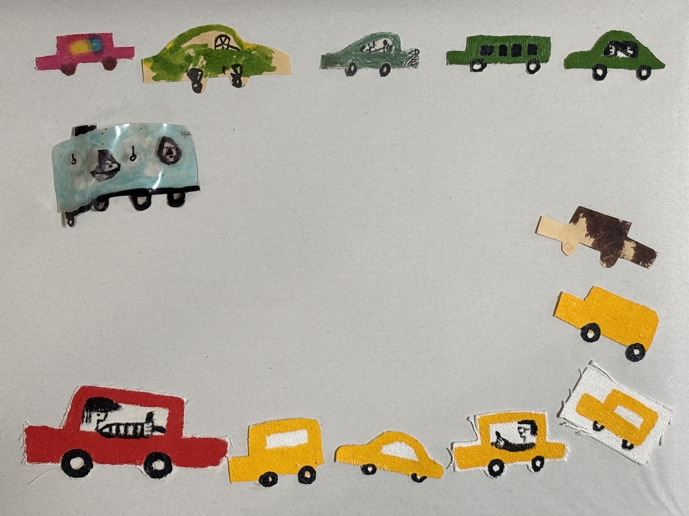 人から見たらただのゴミかもしれないが、しまがまだまともに絵は描けないけど、制作の邪魔をしてくるので、どうにか一緒にたのしくできないかと考えた末にうまれた技法?でした。